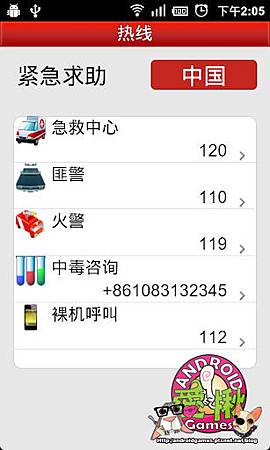 所以急救專線都是中國的號碼
